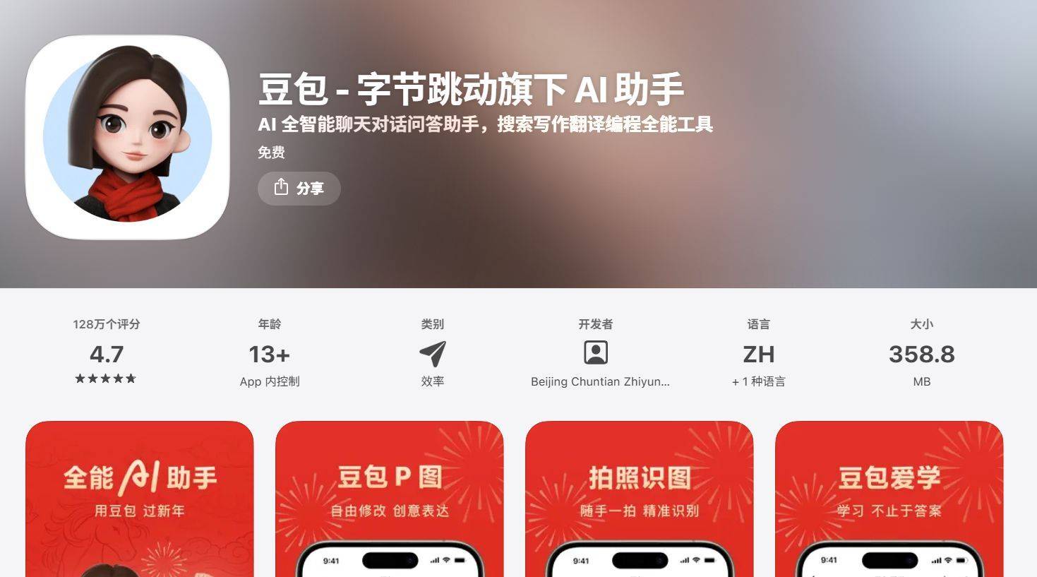 此前有报道援引字节内部人士透露,豆包的用户增长、市场推广费用,是字节历史上所有日活破亿产品中花费最低的。