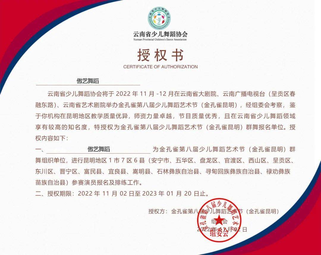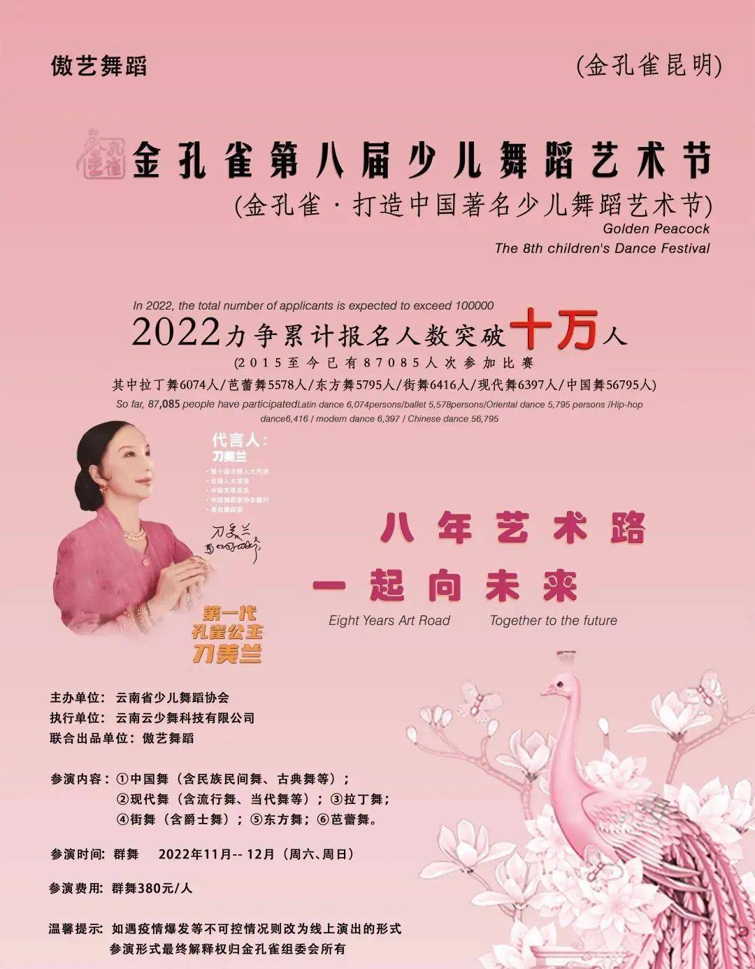 傲艺舞蹈2022年受组委会邀请备战金孔雀第八届少儿舞蹈艺术节, 傲艺舞蹈至今已参加过一届金孔雀少儿舞蹈艺术节。