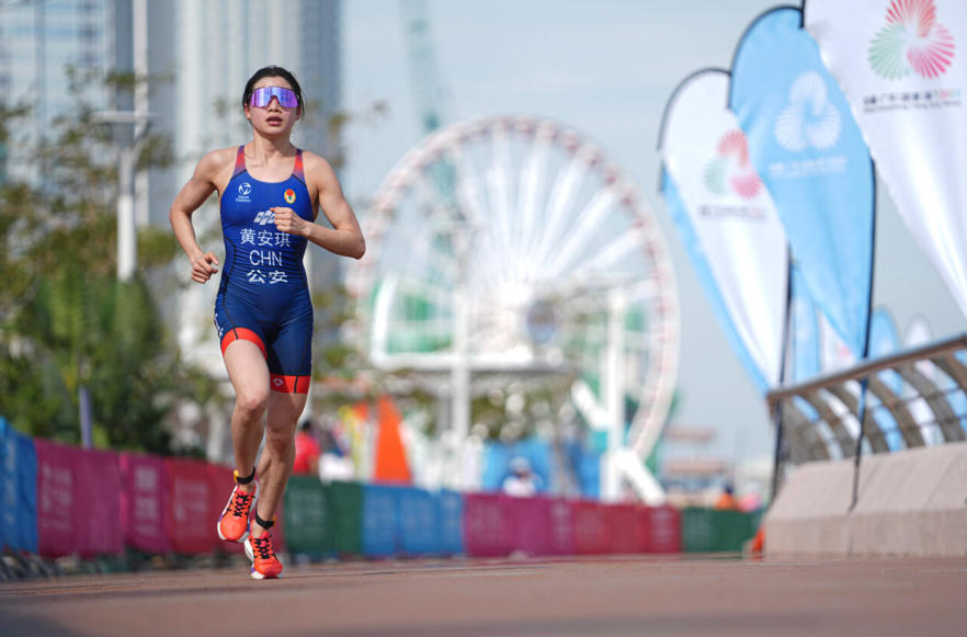 在香港赛区进行的铁人三项女子个人赛上,河北省与中国公安体育协会联合培养的运动员黄安琪开赛后就遭遇挑战,全程1.5公里的游泳比赛过后,她在41名参赛选手中仅列第15位。在随后的骑行阶段,黄安琪一点点扳回劣势,排名不断提升。在以第4名完成骑行后,黄安琪快速转换,一路飞奔,最终率先冲过终点线秒的成绩获得金牌,成功卫冕。