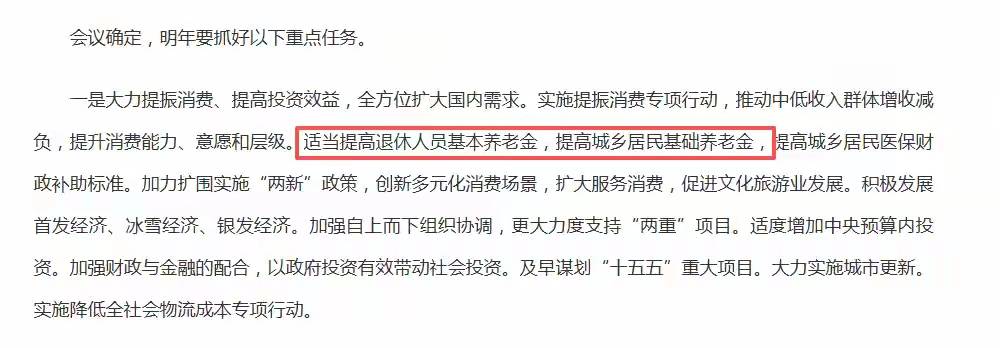 那么,普通人该如何判断2026年养老金是否调整?最权威的信号并非财政部的宏观文件,而是即将召开的中央经济工作会议。回顾2024年12月召开的中央经济工作会议,通稿中明确写入“适当提高退休人员基本养老金,提高城乡居民基础养老金”,这也为2025年养老金上涨奠定了政策基础。