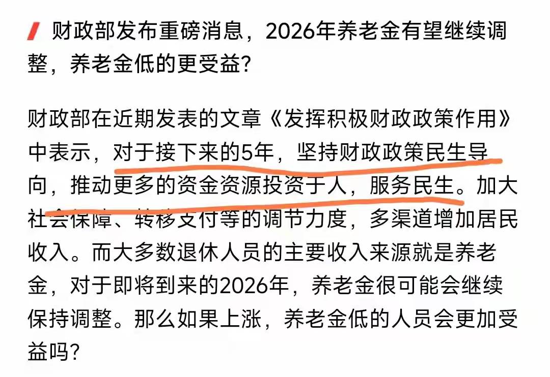 财政部提到的“服务民生、增加居民收入”,是覆盖教育、医疗、养老、就业等多个领域的宏观导向,不能简单等同于“专门针对养老金上涨”。正如有人调侃,若按此逻辑,也可解读为财政将加大医保投入、提高农民补贴等,把宽泛的民生政策聚焦到单一的养老金调整上,显然不够严谨。