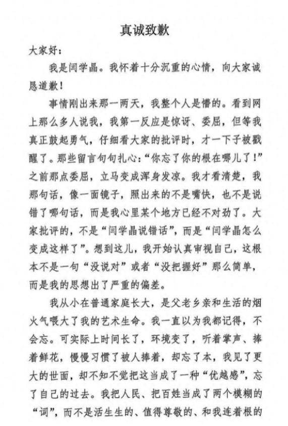 道歉信里,她写自己“被掌声鲜花捧久了,思想出了偏差”。但这偏差的背后,是一种无意识的隔绝。