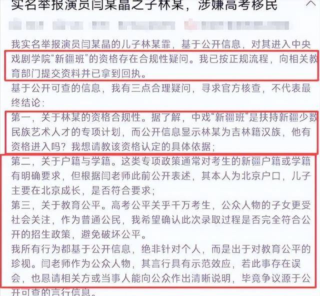 别忘了引爆这场风暴的,还有“高考移民”的举报。虽然中戏发声明说她儿子是2012年北京生源录取,当年没招新疆班。