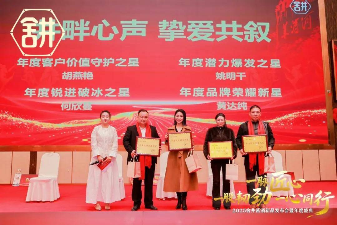 分享过后,舍井酱酒培训总监刘琪为四位窖主分别颁发了“年度潜力爆发之星”、“客户价值守护之星”、“锐进破冰之星”及“品牌荣耀新星”奖项,致敬每一份真诚的热爱与并肩同行的力量!